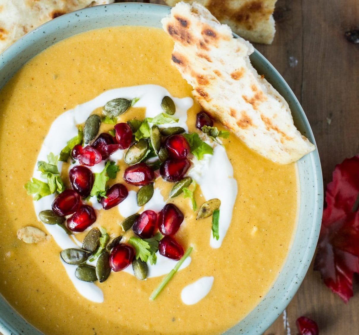 Garnish: sour cream, pomegranate seeds and pumpkin seeds (pepitas) and/or a sprinkle of fresh herbs such as parsley.